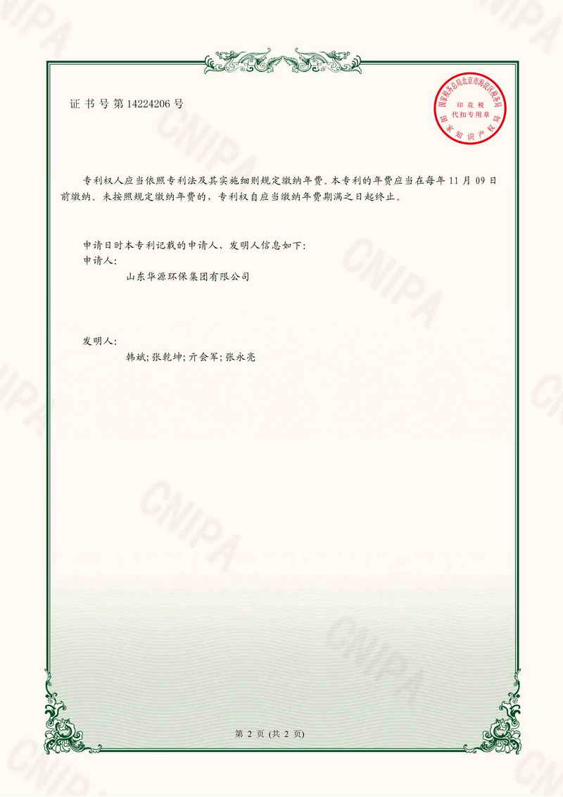 專利證書一種廢鋁灰生產(chǎn)速凝劑的反應(yīng)物混合設(shè)備